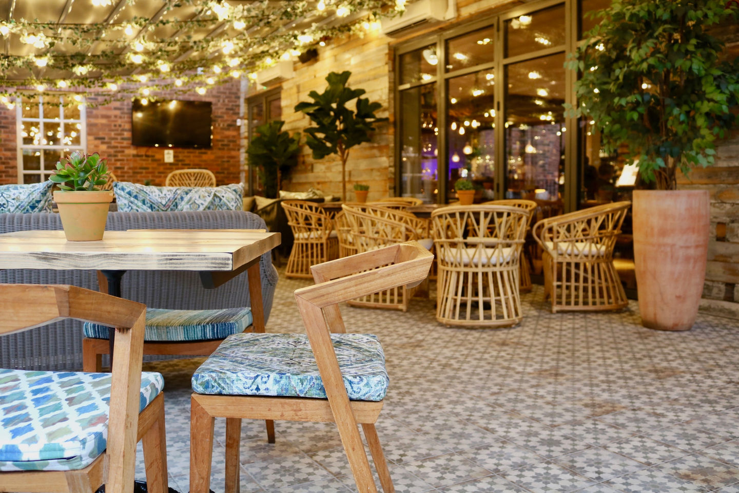 Timber panelling, sumptuous velvets, vintage antiques and lots of lush greenery make for the perfect bar, restaurant and terrace spaces that compliment the existing hotel.